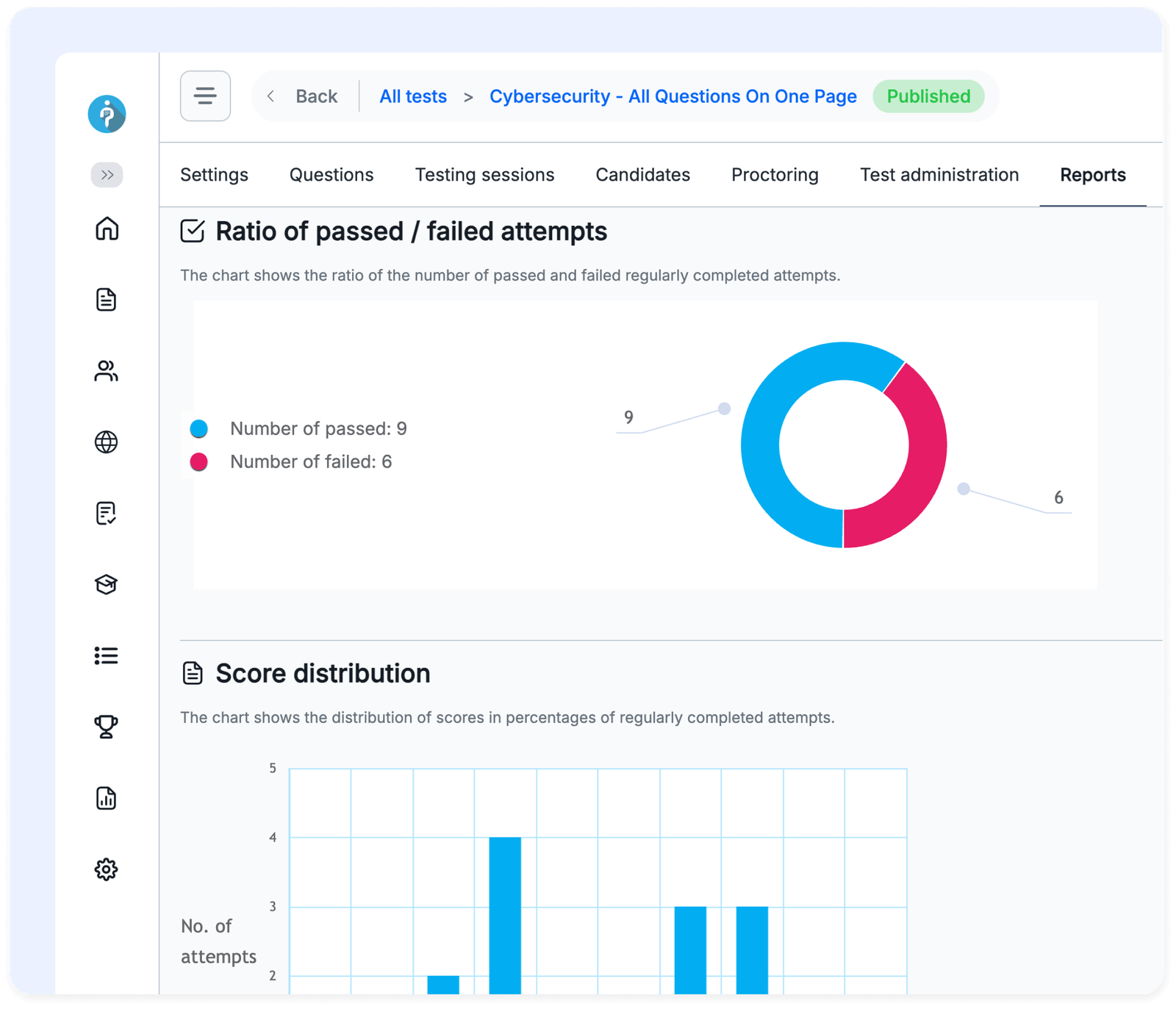 Measure the impact of your training courses and tests with ease. YouTestMe provides a time-efficient, precise, and comprehensive reporting system that fits any scenario.