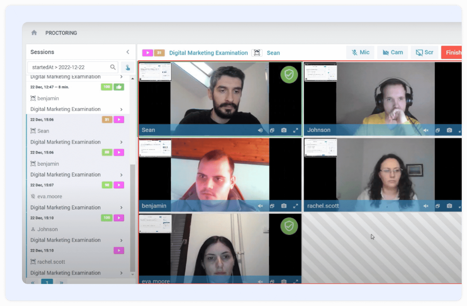 With live proctoring, candidates are greeted by the proctor with whom they can communicate at any time during the test.