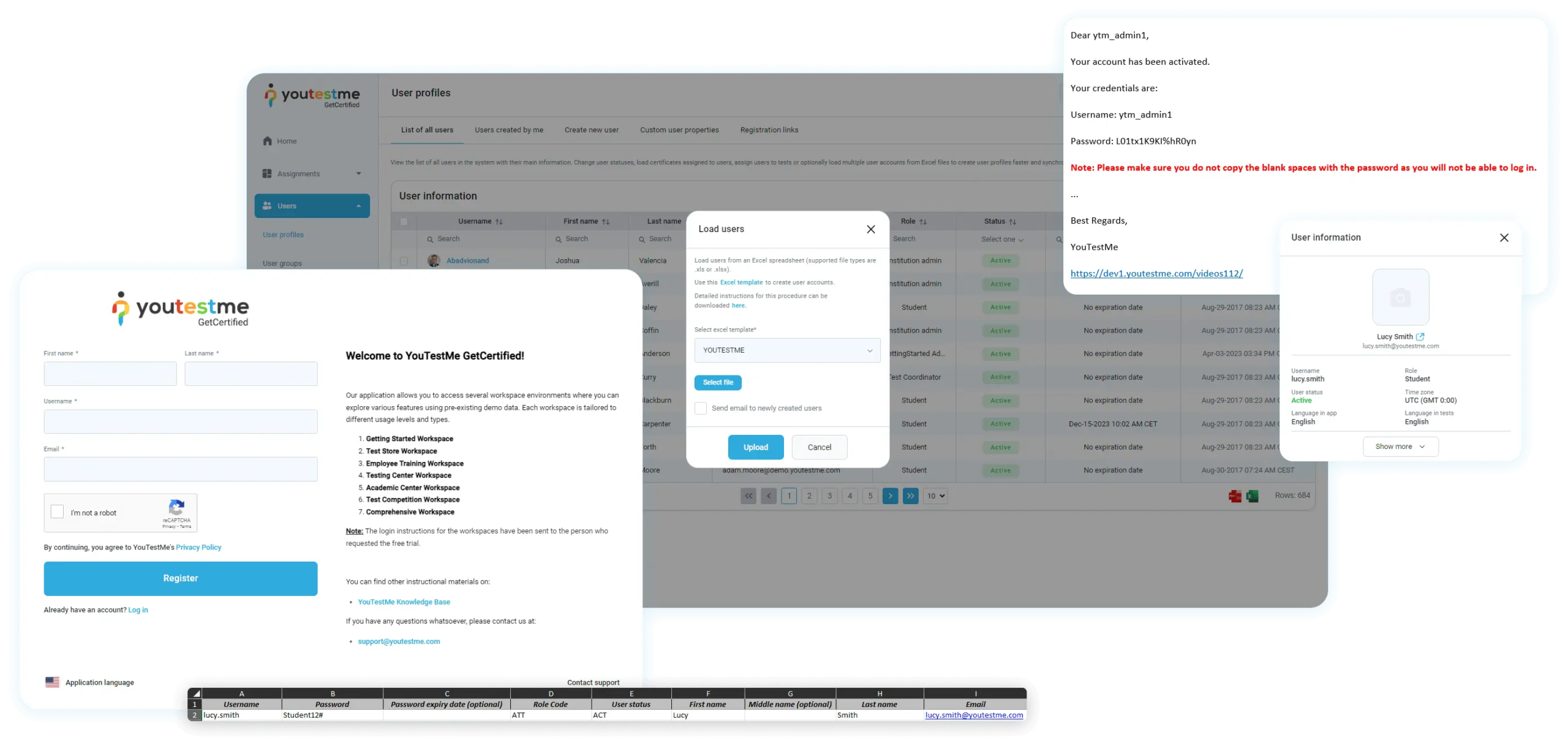 Allow self-registration, or require approval from managers. Alternatively, registration via predefined links assigns users specific roles within the system. Additionally, you can bulk import users via Excel sheets.