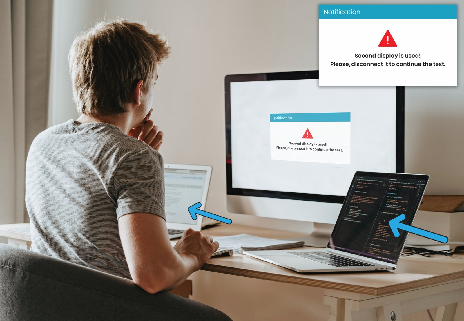 - Display monitoring – prevents candidates from using multiple screens to simply Google the answers on their alternate device.