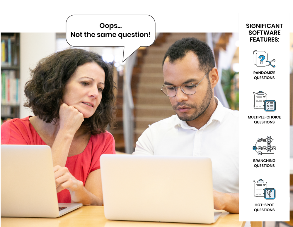 That way, the examinees can’t simply Google the answers or share the questions with other candidates.