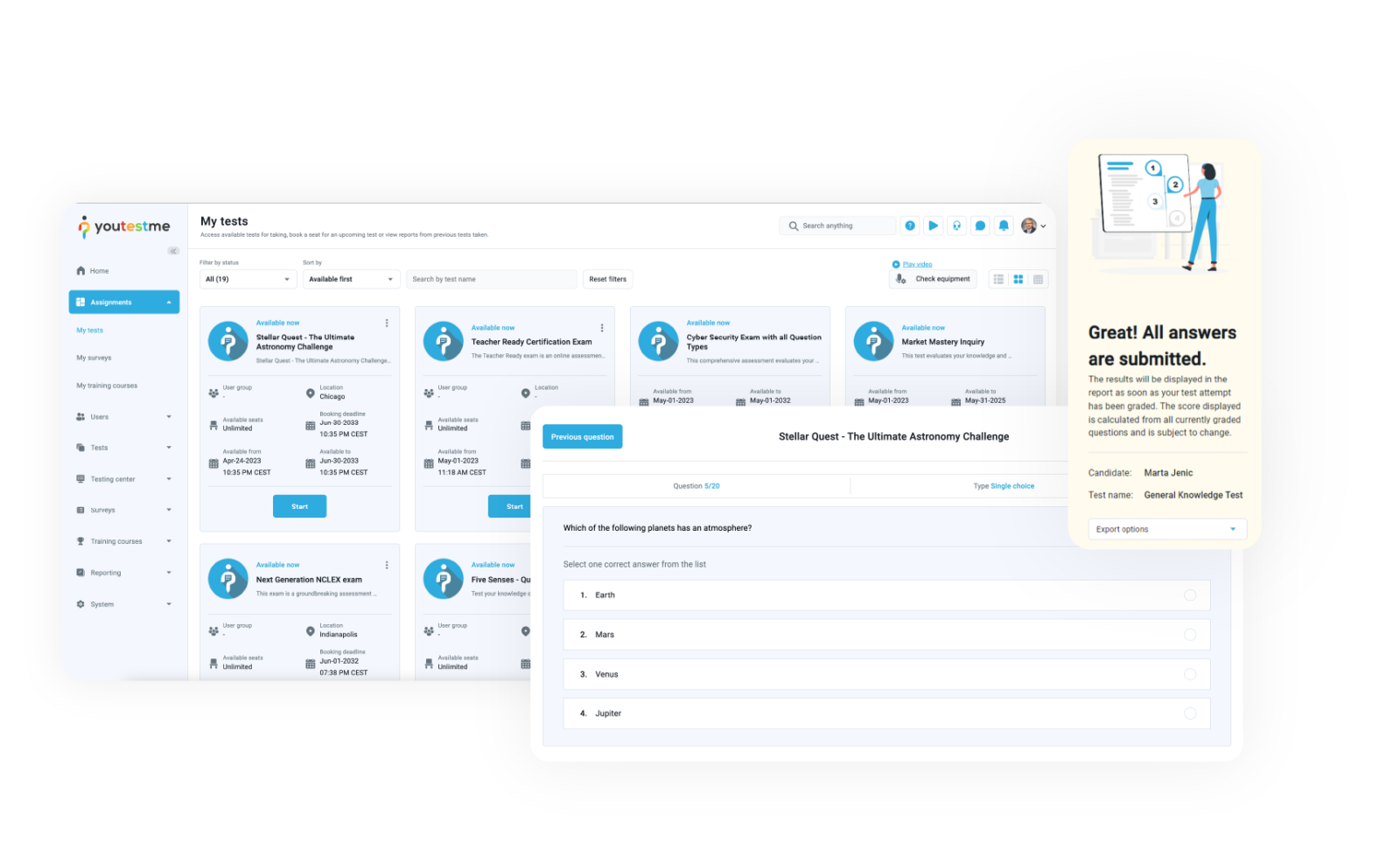 YouTestMe is designed to streamline and enhance every stage of the hiring process. We offer:
