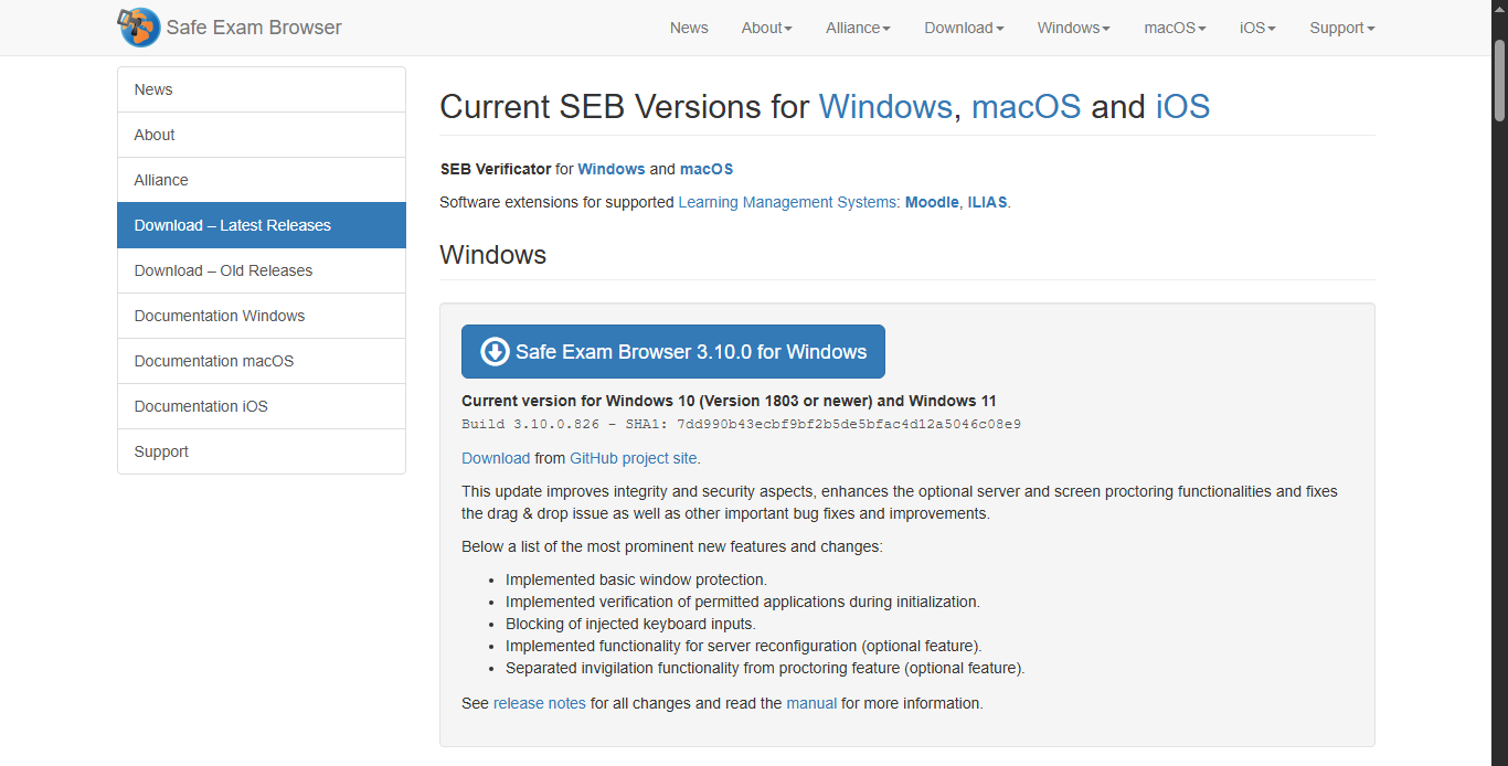 Downloading Safe Exam Browser