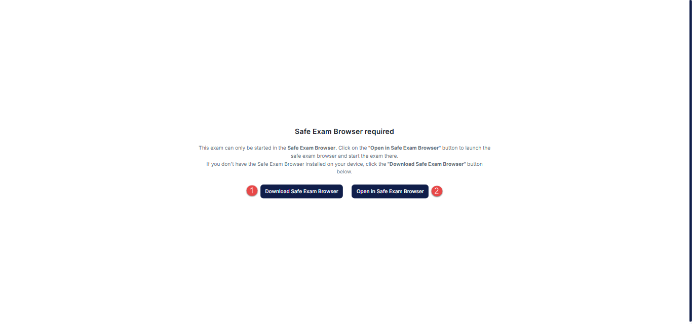 - If you do not have a Safe Exam Browser installed, click the Download Safe Exam Browser button.