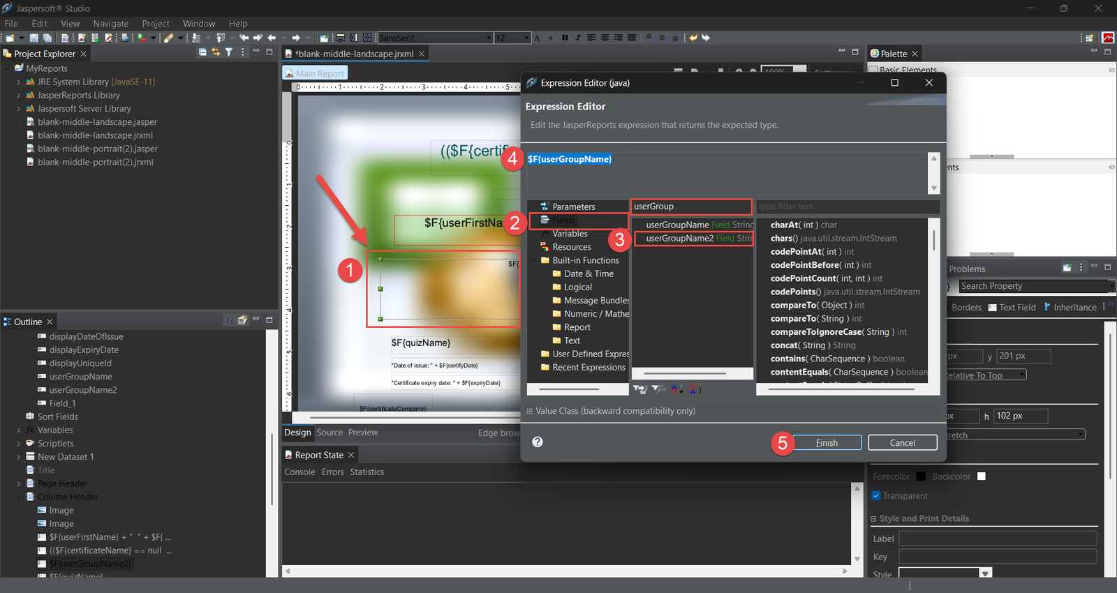 - Select the .jrxml template you have been editing and press Ctrl + S to save your changes.