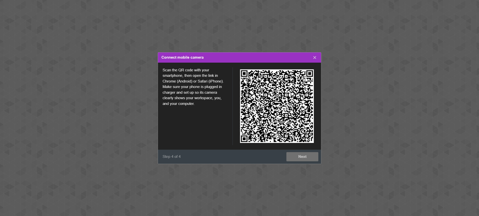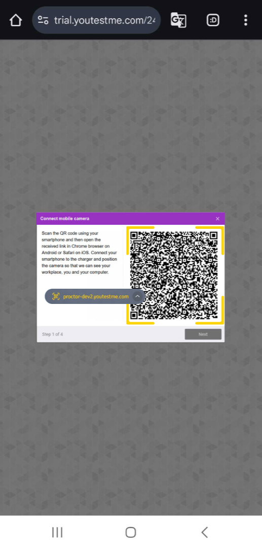 To connect the secondary camera, candidates scan the QR code displayed on their computer screen using their phone’s camera.