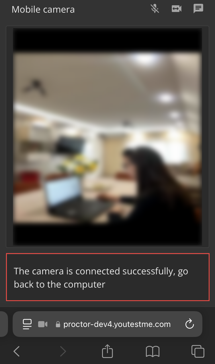 A confirmation message, “Camera is connected successfully, go back to the computer”, assures candidates of the successful connection.