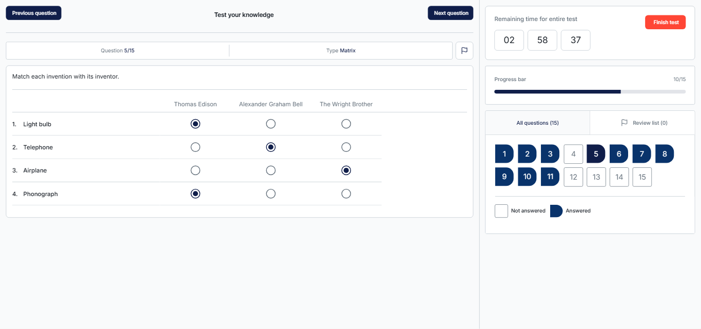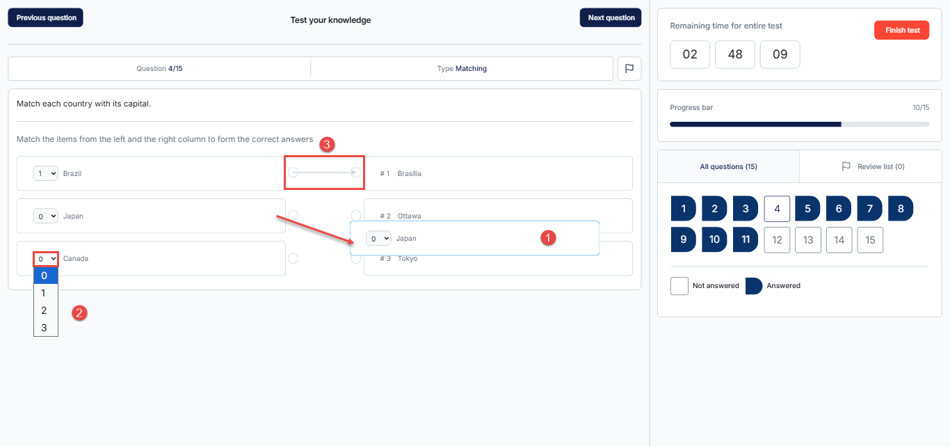 - Connecting Lines – Drag an arrow from one item to its corresponding match.