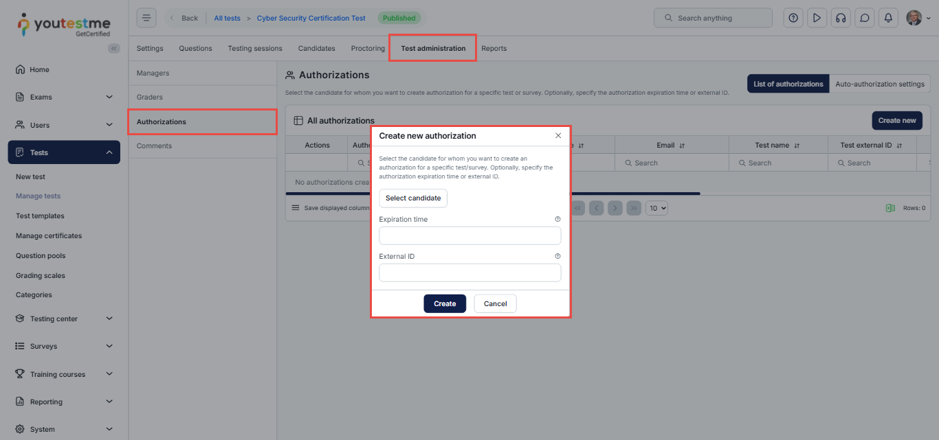 - How to Create a Test and Schedule a Testing Session