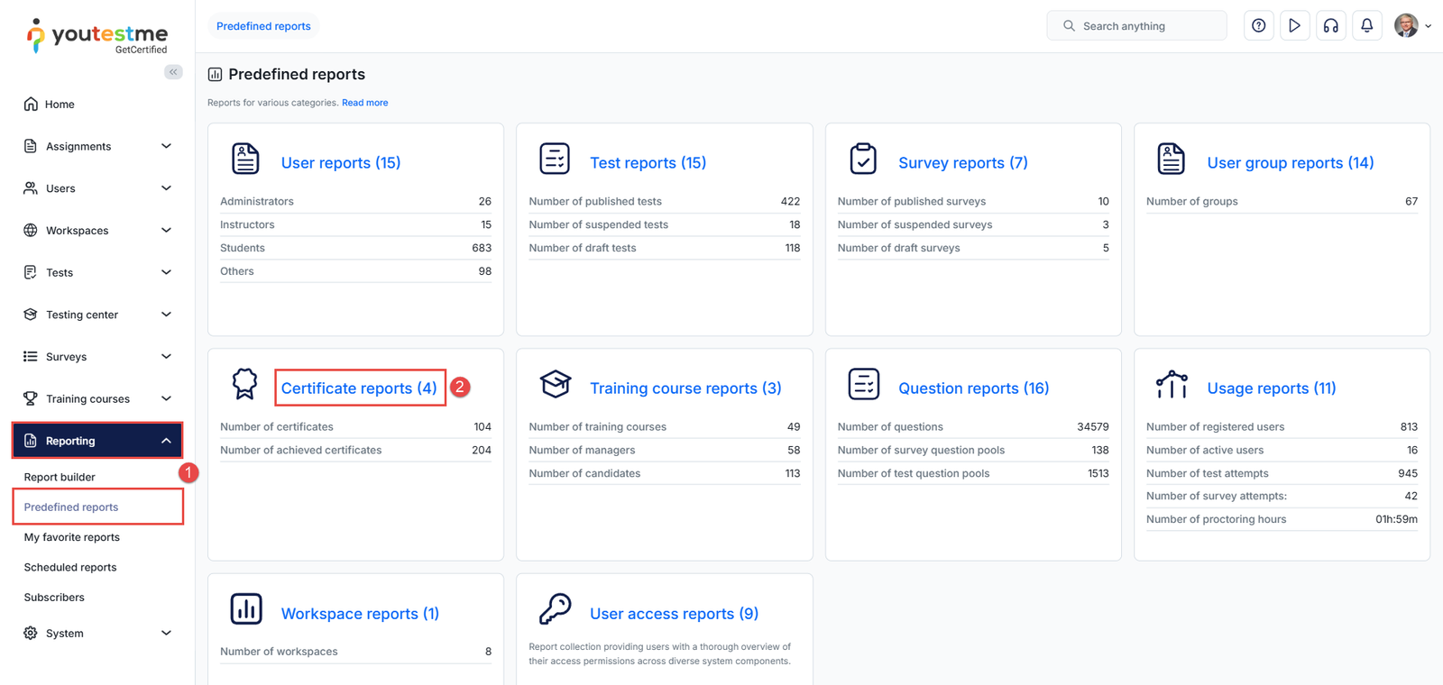 - Select Certificate reports