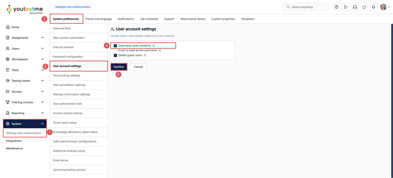 To enable Username case-sensitive option, hover over the System in the main menu and: