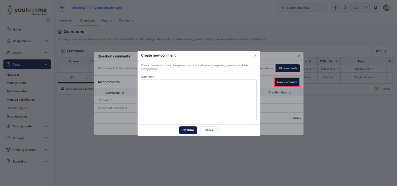 This article will explain how you can add comments as a member of the question pool with both modify and read-only permissions.