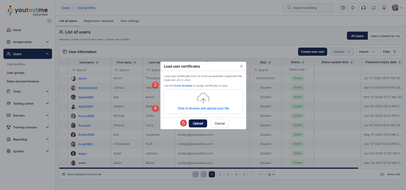 This article explains how to assign certificates to multiple users at once by uploading a predefined Excel template. This feature allows administrators to efficiently award certificates without assigning them individually.