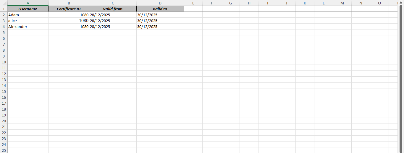 - Certificate ID – In this column, you should input the ID associated with a particular certificate.