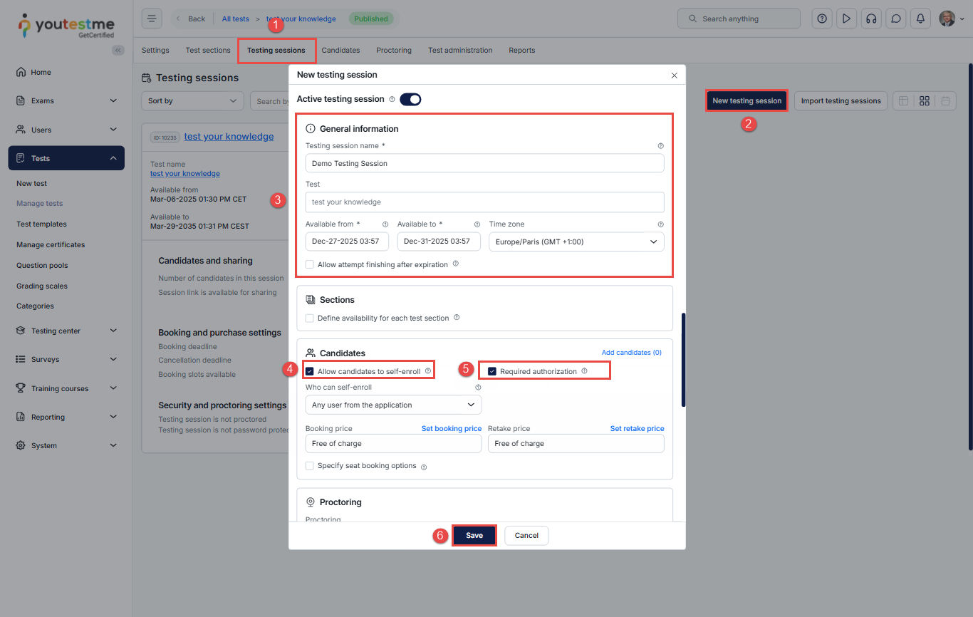 For further details on creating a testing session, please refer to this article.