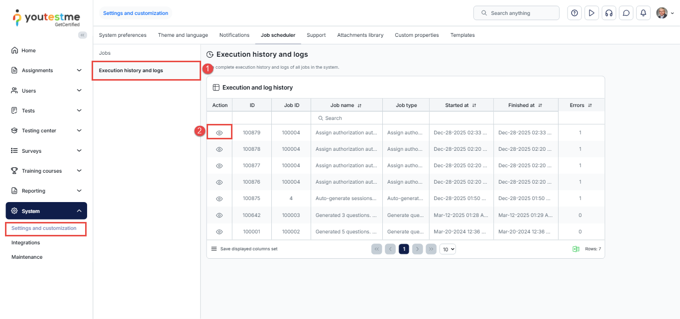 - Navigate to the Execution History and Logs section.