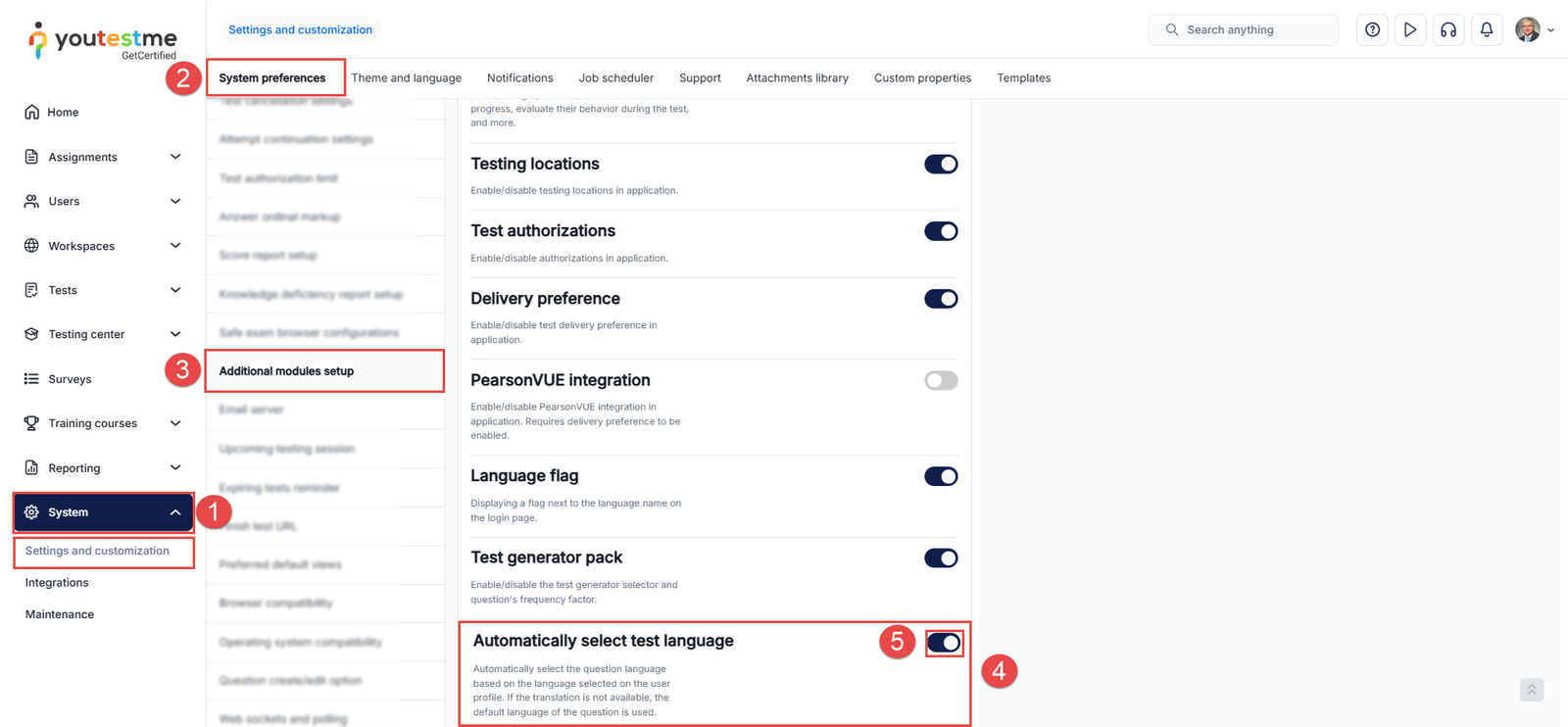 Locate the module Automatically select test language.