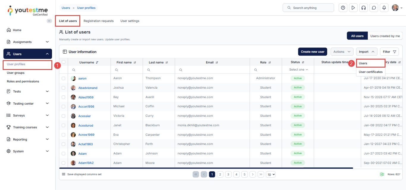 - If Send email to newly created users is enabled, an email with login information will be sent to all imported users.
