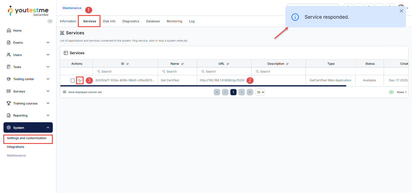 - Check whether the system-wide jobs are enabled and responding using the Ping icon.