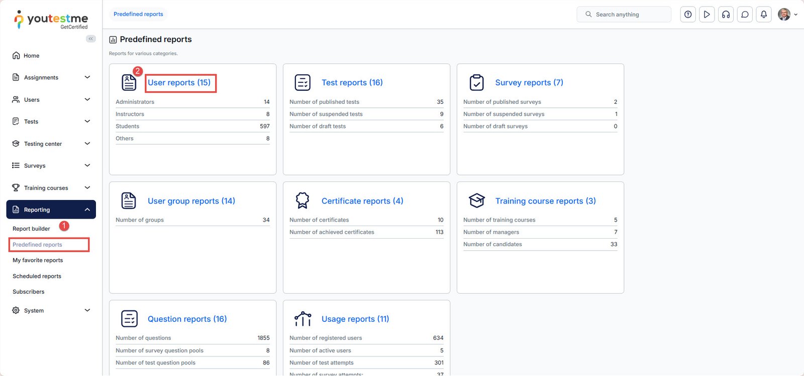 - Select Reporting from the main menu and choose the Predefined Reports sub-menu.