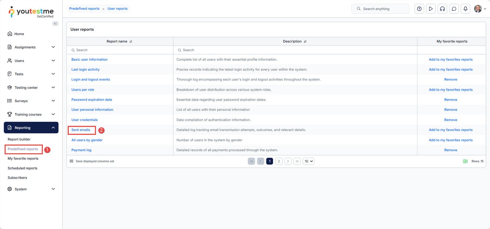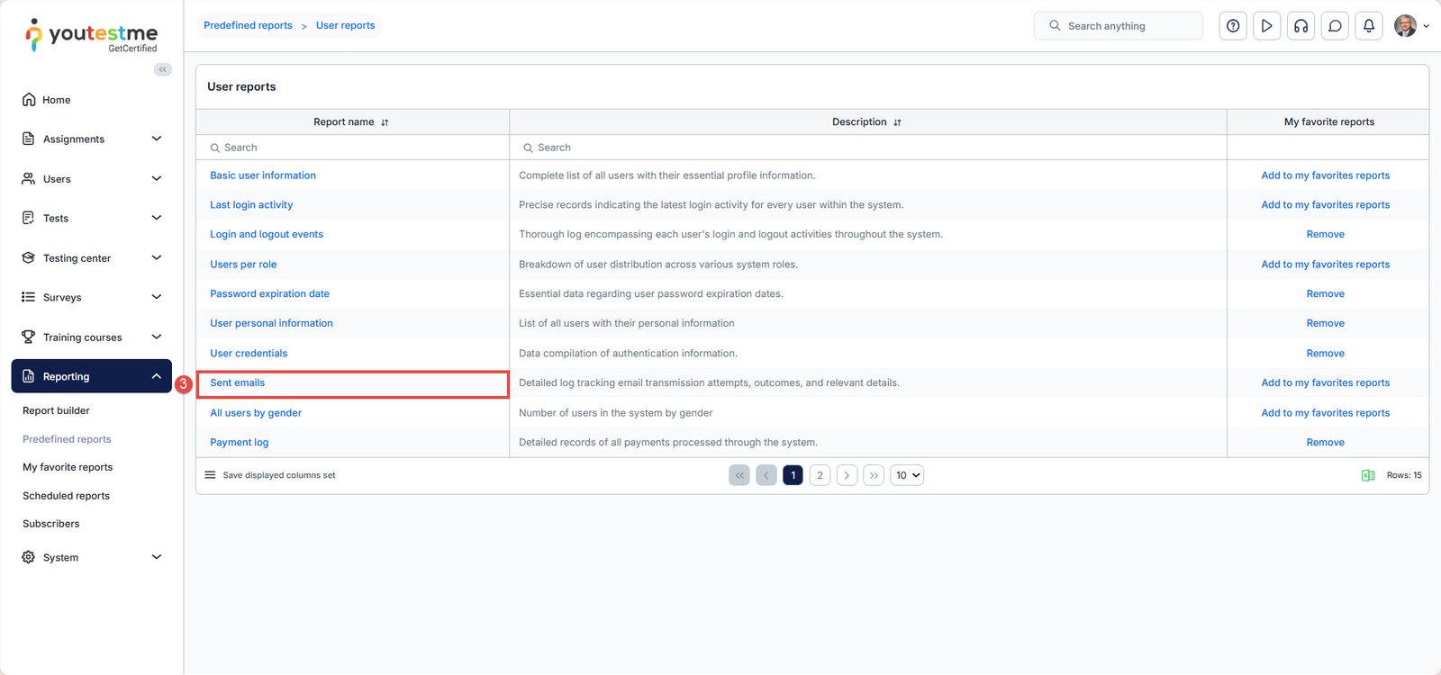 One of the predefined reports generated by the system allows users to review the emails sent by the system. To check the sent emails, follow the steps below: