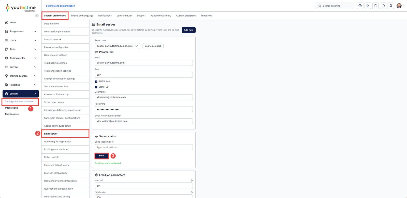 Testing the Email Server configuration