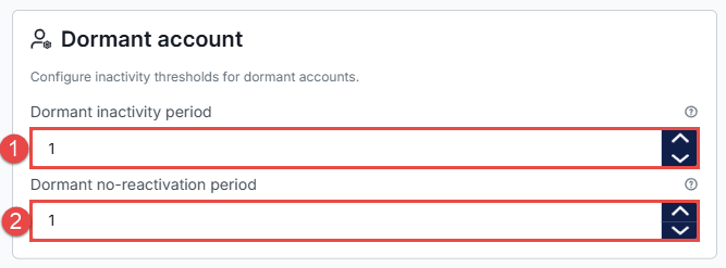 - Dormant Inactivity Period – Defines the period of inactivity (in minutes) after which the account is marked as dormant.
