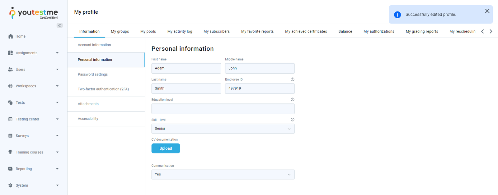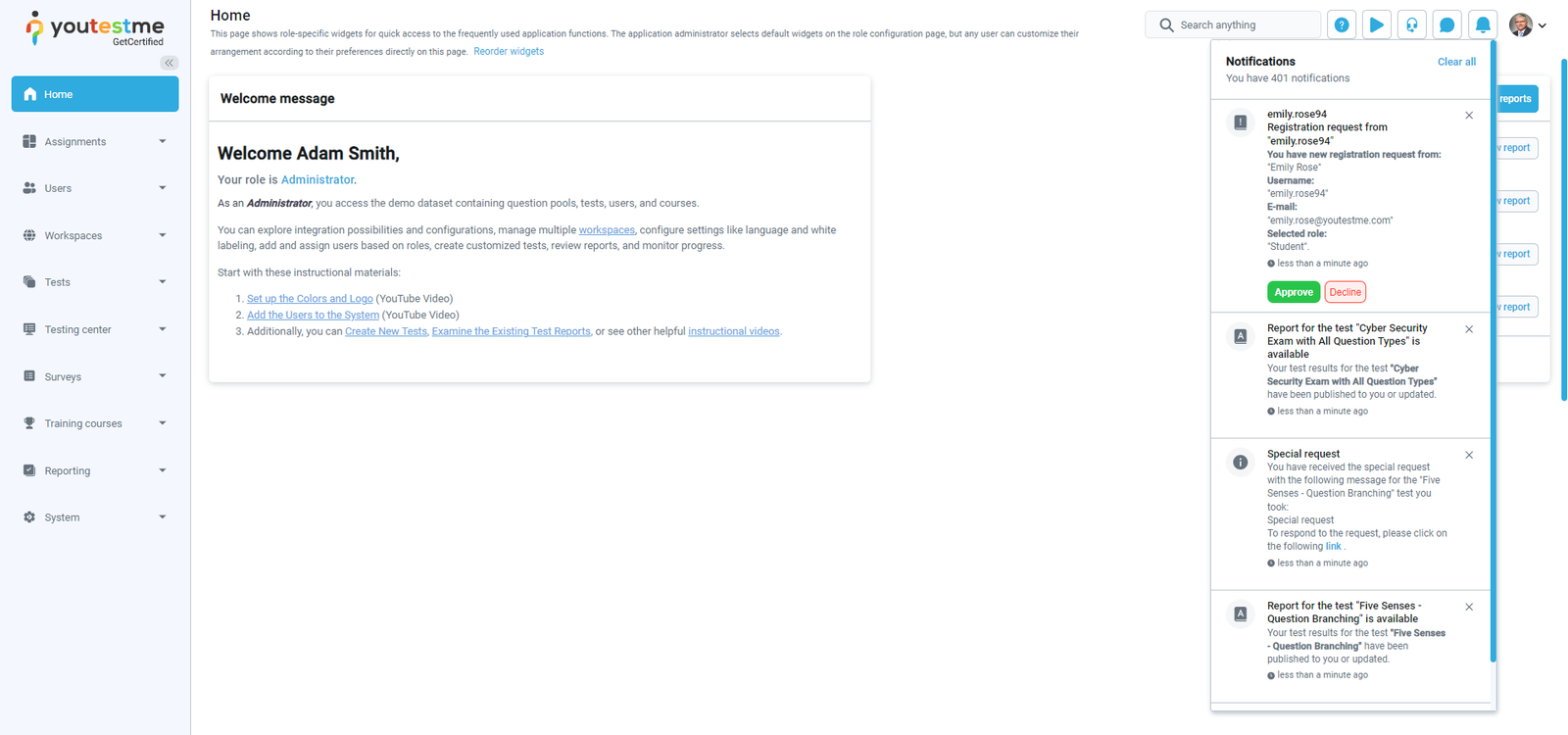 - Test results on the manager’s approval – The notification trigger when you finish the test-taking process and a manager approves your test results. You will receive an email and in-app notification containing a message that the test results are available, and you may view the full report.