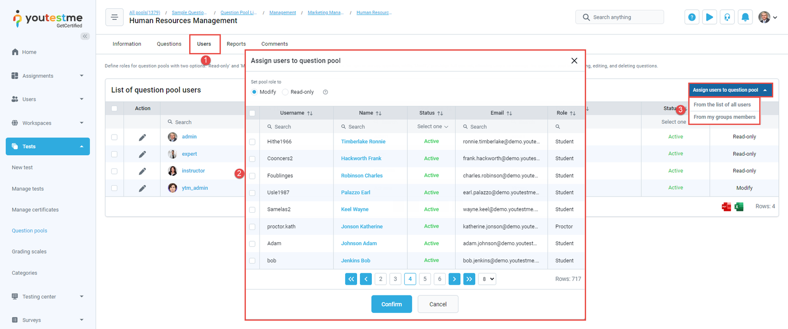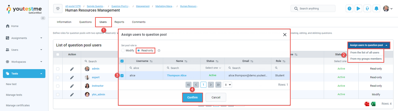 - Assigned as a pool user – The notification triggers when you are assigned as a pool user. The procedure of assigning the pool user is similar to the procedure of assigning the group manager. The only difference is that you must select a Read-only group role and click the Confirm button to assign a pool user. After the action is done, you will receive an email and application notification. The notification text contains the name of a pool you are a member of.