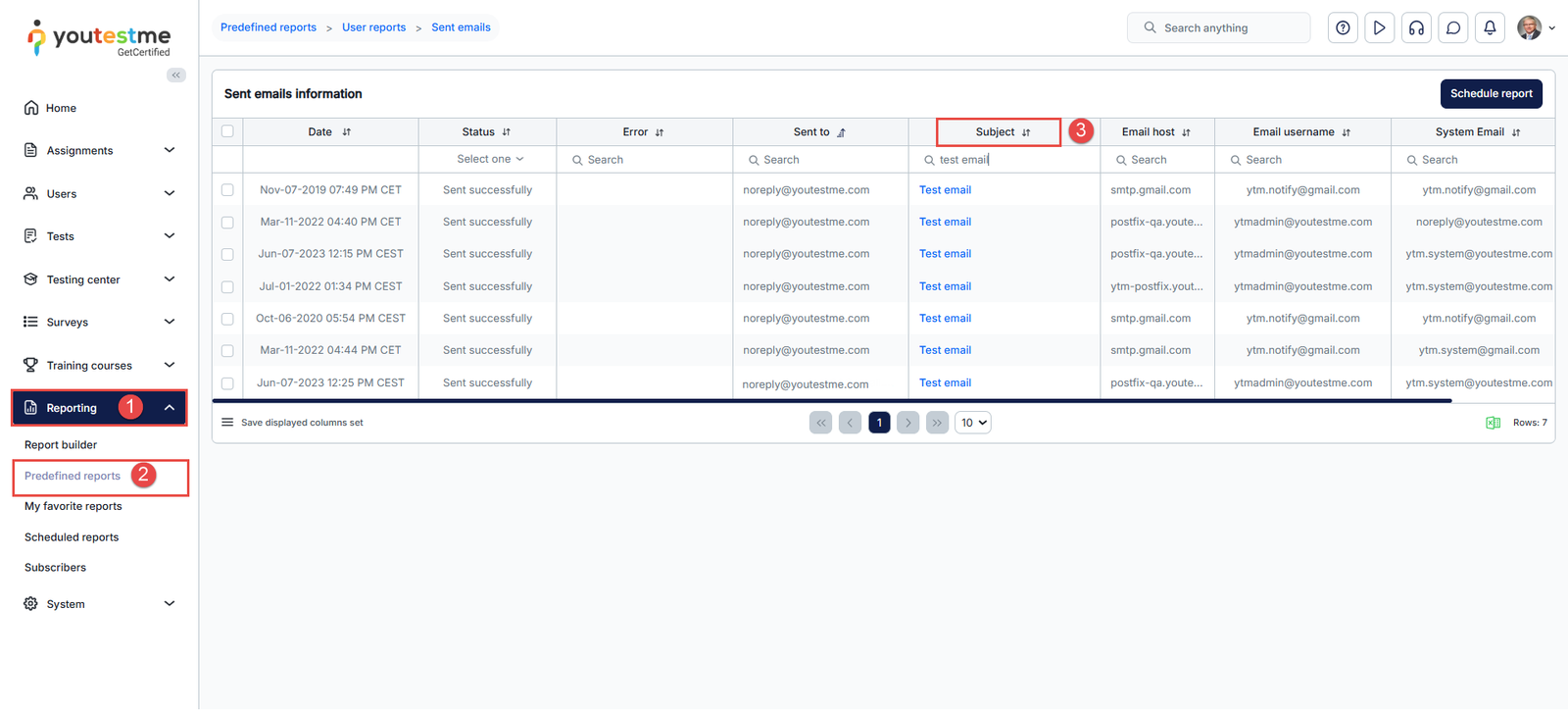 3. Search for the email with the subject: Test email.