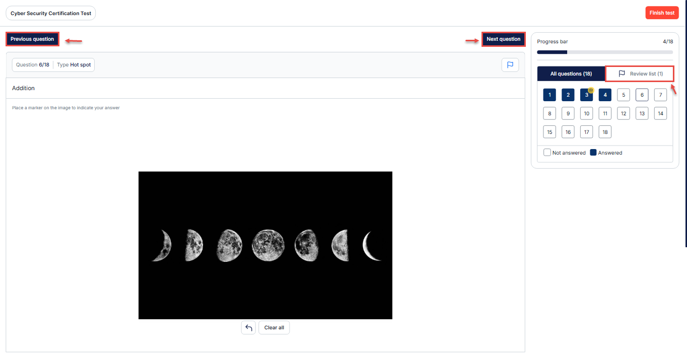 Additionally, test-takers can mark questions for review and access a Review List, which allows them to easily revisit and address marked questions before submitting the test.