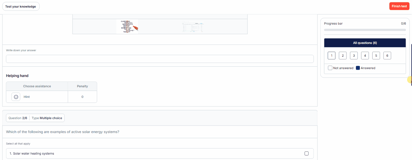 When the All Questions on One Page option is selected, all test questions are displayed on a single page, allowing test-takers to view and answer them without navigating between pages. This layout provides a clear overview of the entire test, enabling test-takers to manage their time and responses more efficiently. Test creators do not need to configure additional settings for navigation, as the test-taker can scroll through the entire test and answer questions at their own pace.