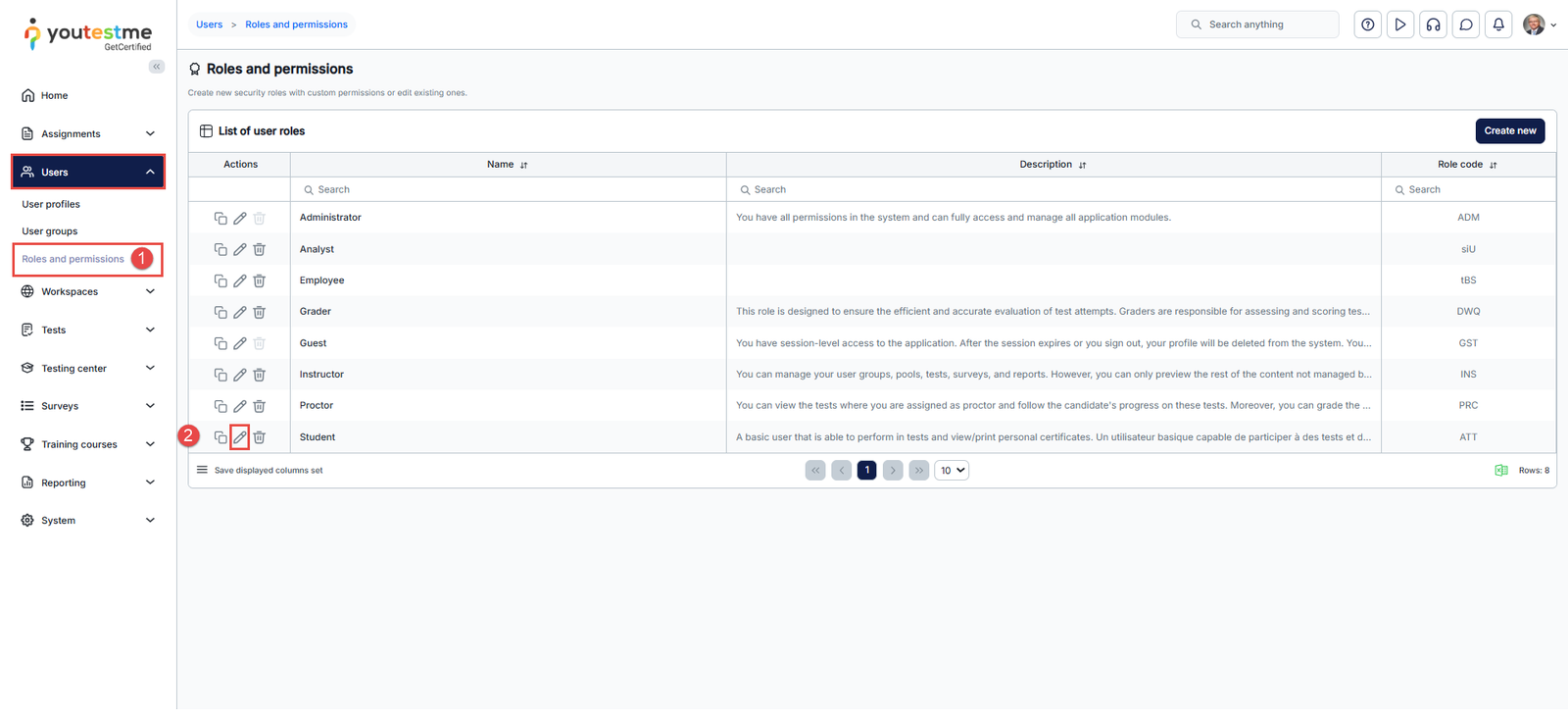 - Enter the desired role configuration by clicking the Edit icon.