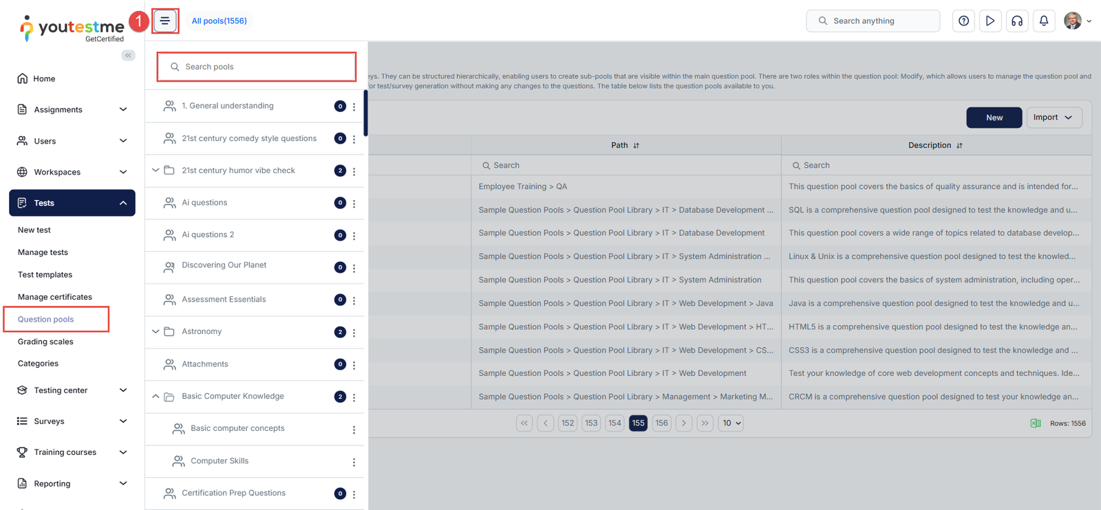 First, access Question Pools from the Tests module in the main menu.