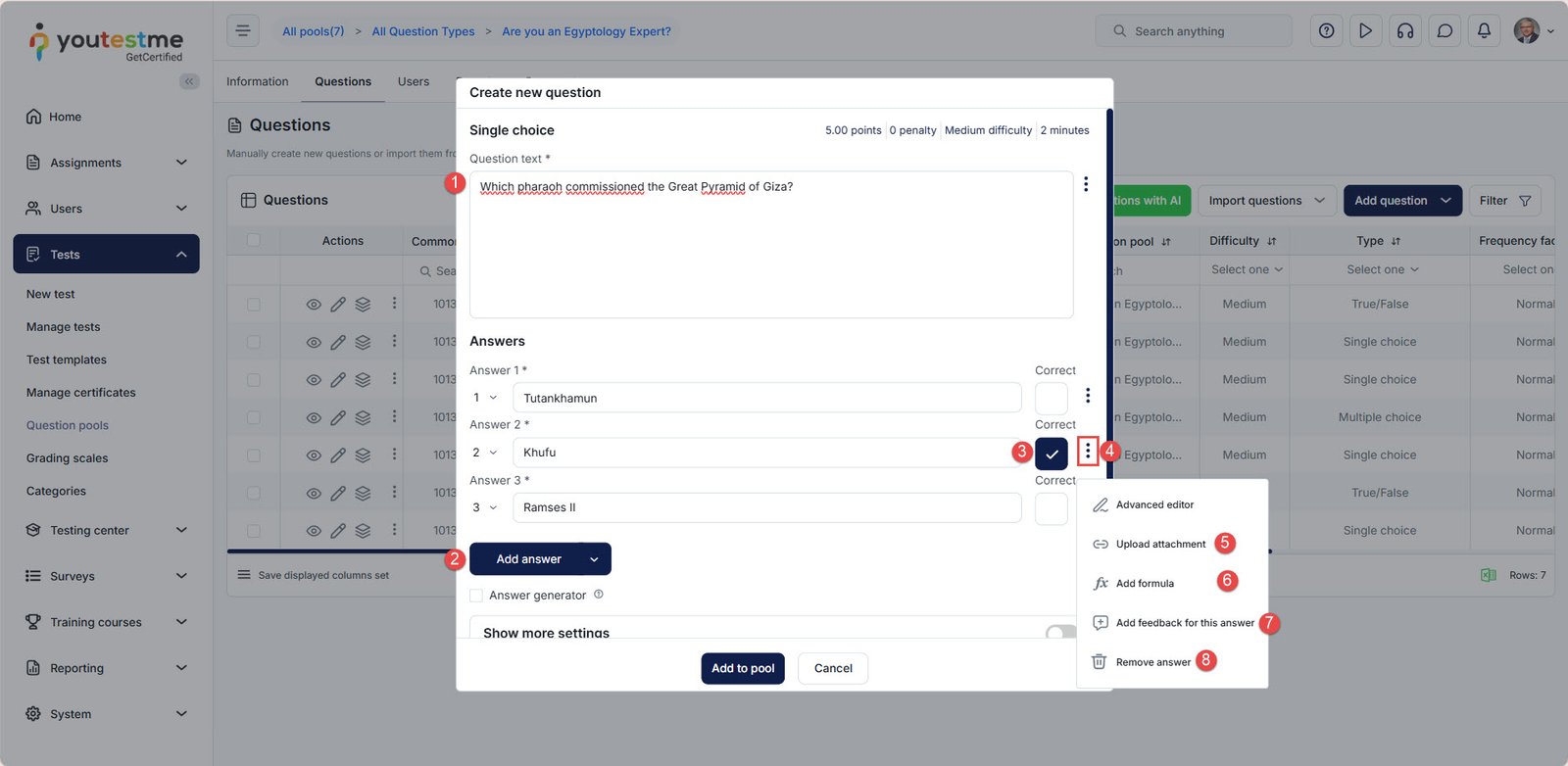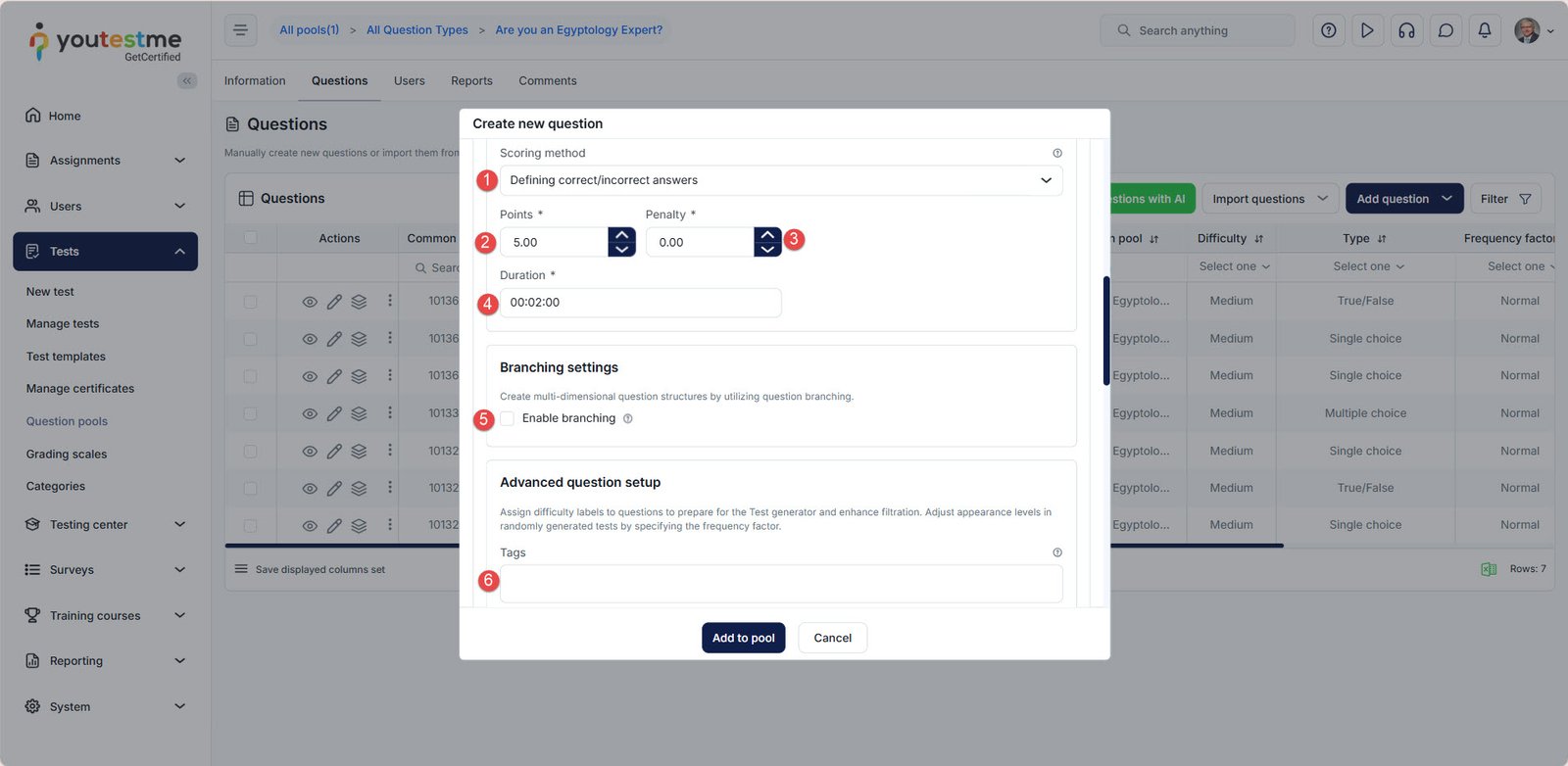 - Add the question to the pool.