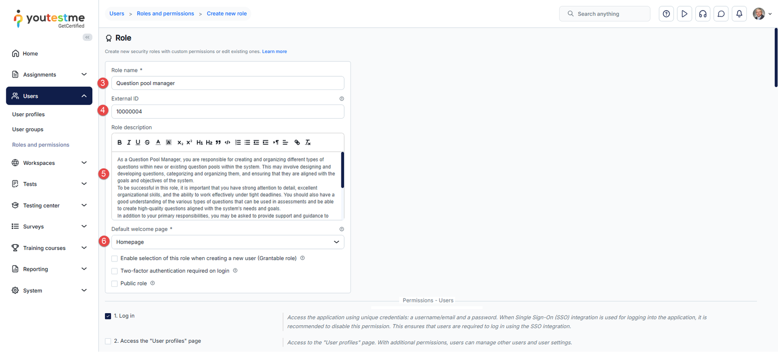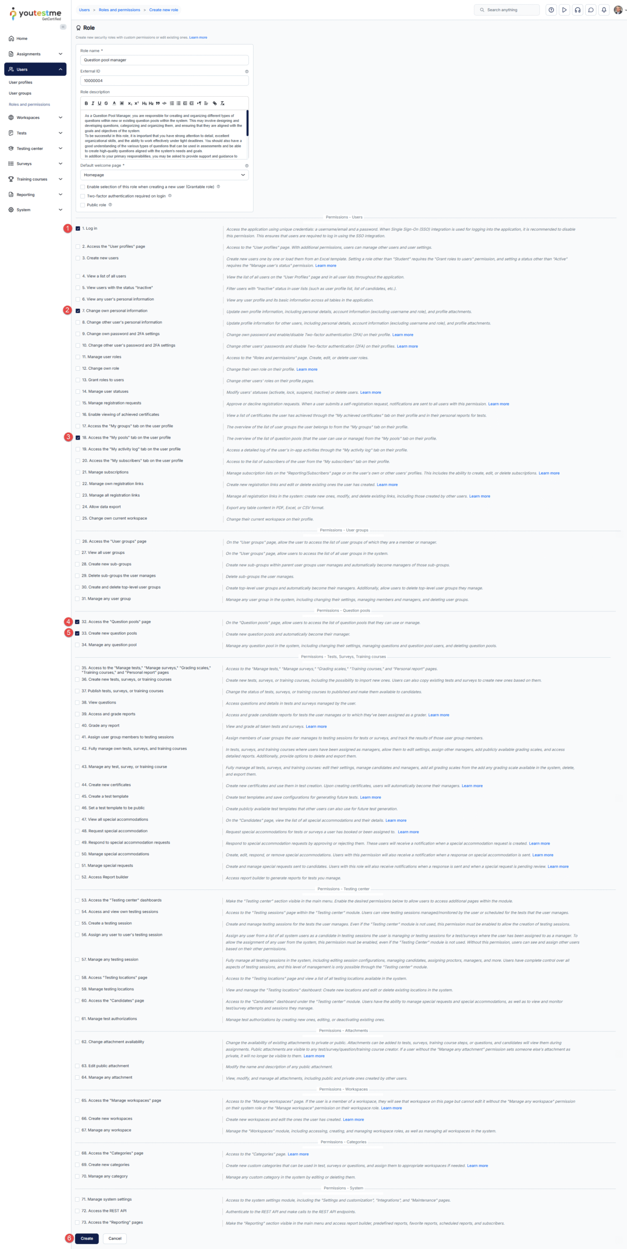- Enter the role name – Question pool Manager.