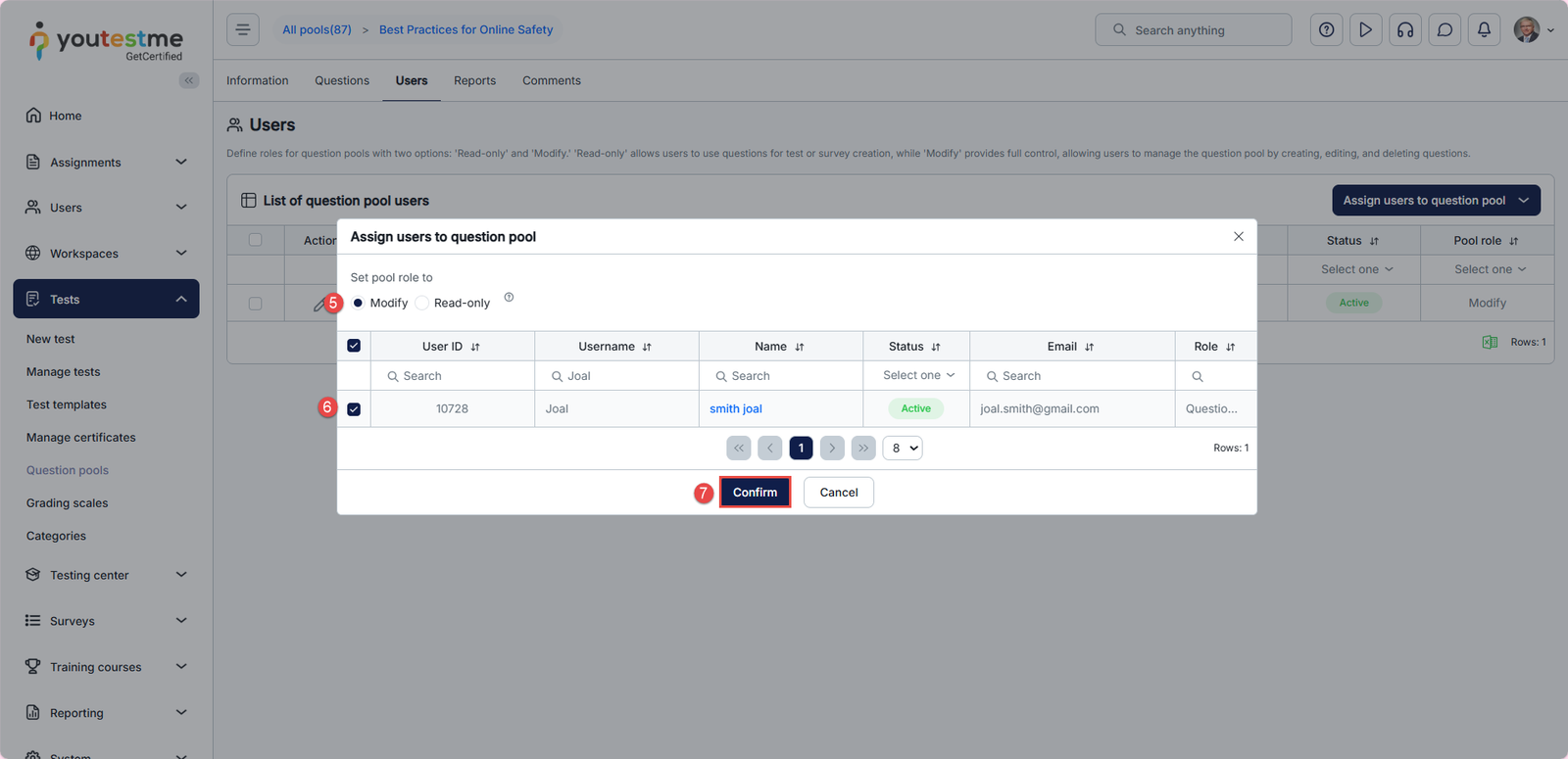 - From the dropdown menu, choose the role of Question pool Manager.