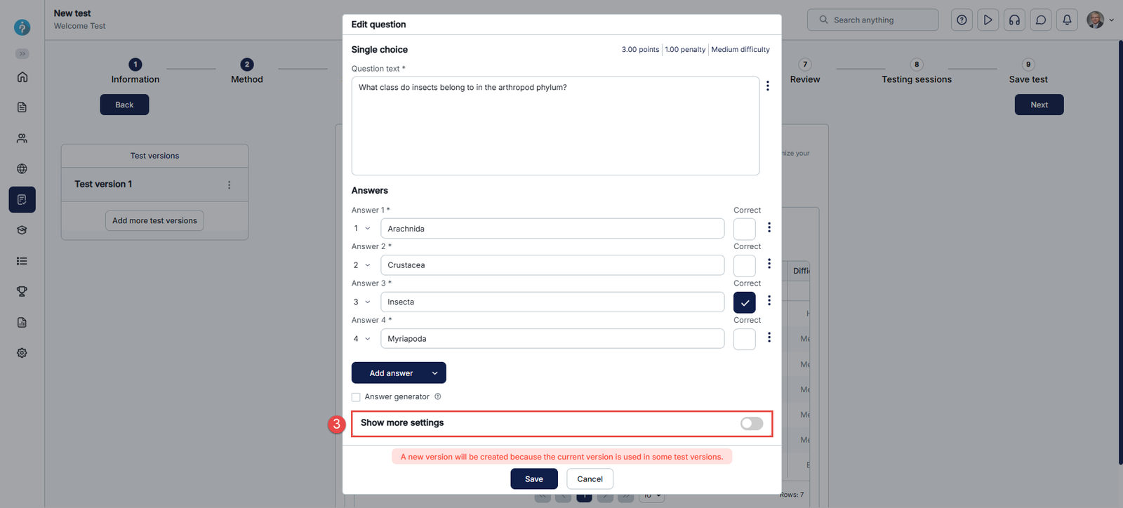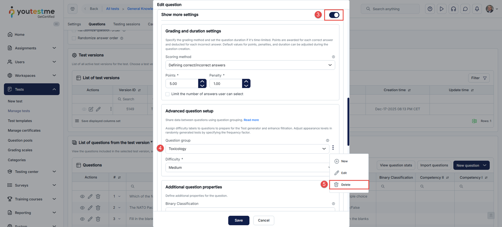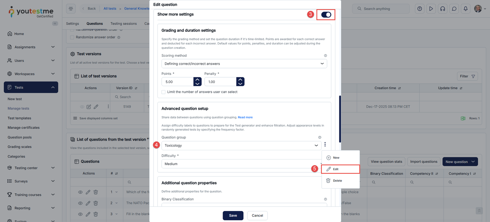 - Open the desired question in the fourth step of the test creation wizard by clicking the Edit icon.