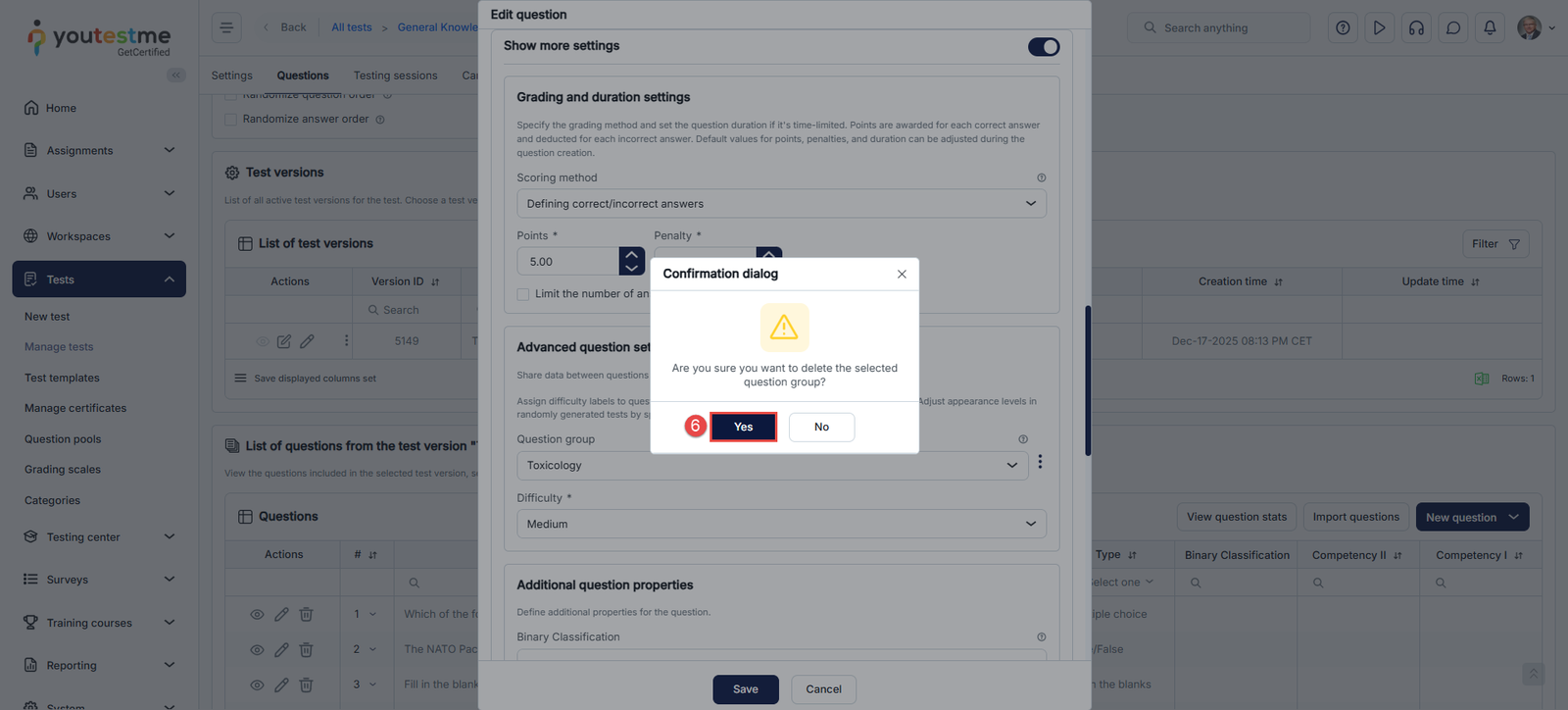 - Deleting: Similarly, deleting a question group from any question removes it from all questions in the group.