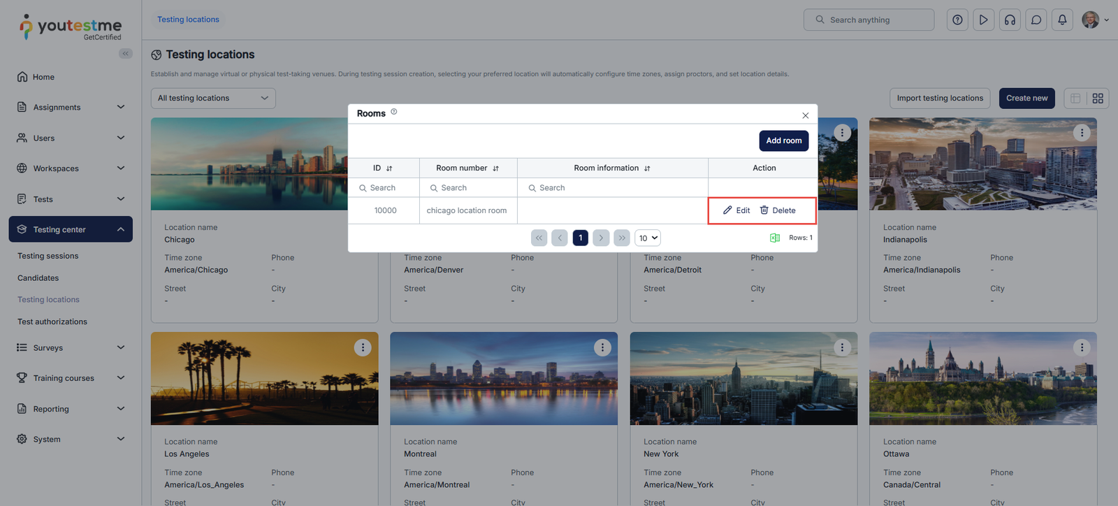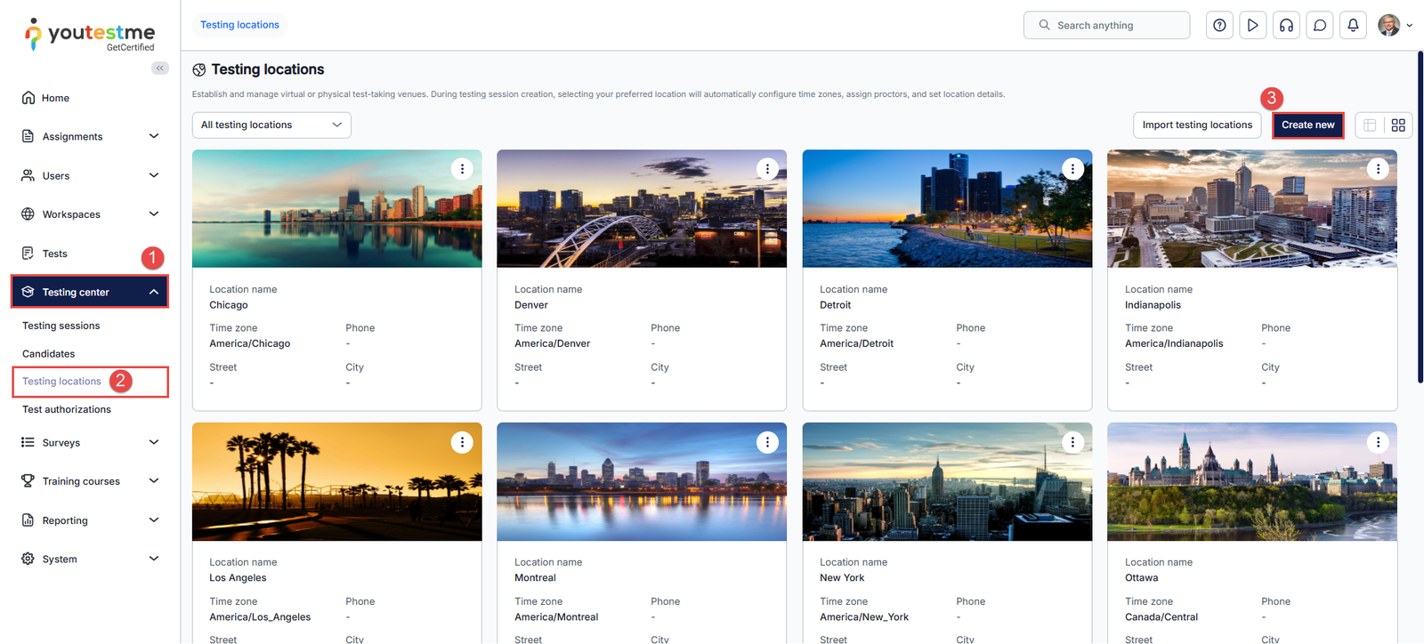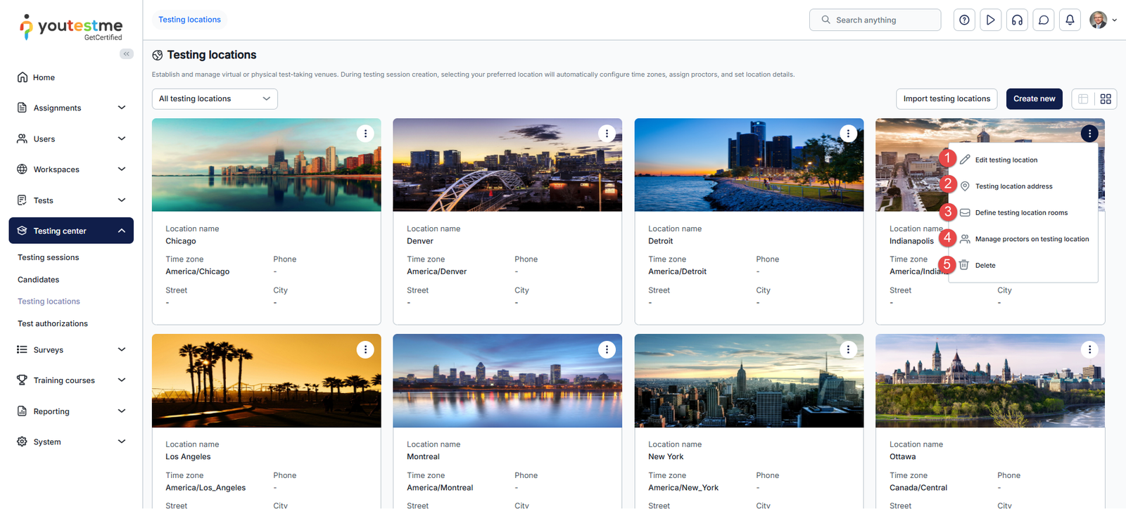- To assign proctors, click the three dots and select Manage proctors for the testing location.