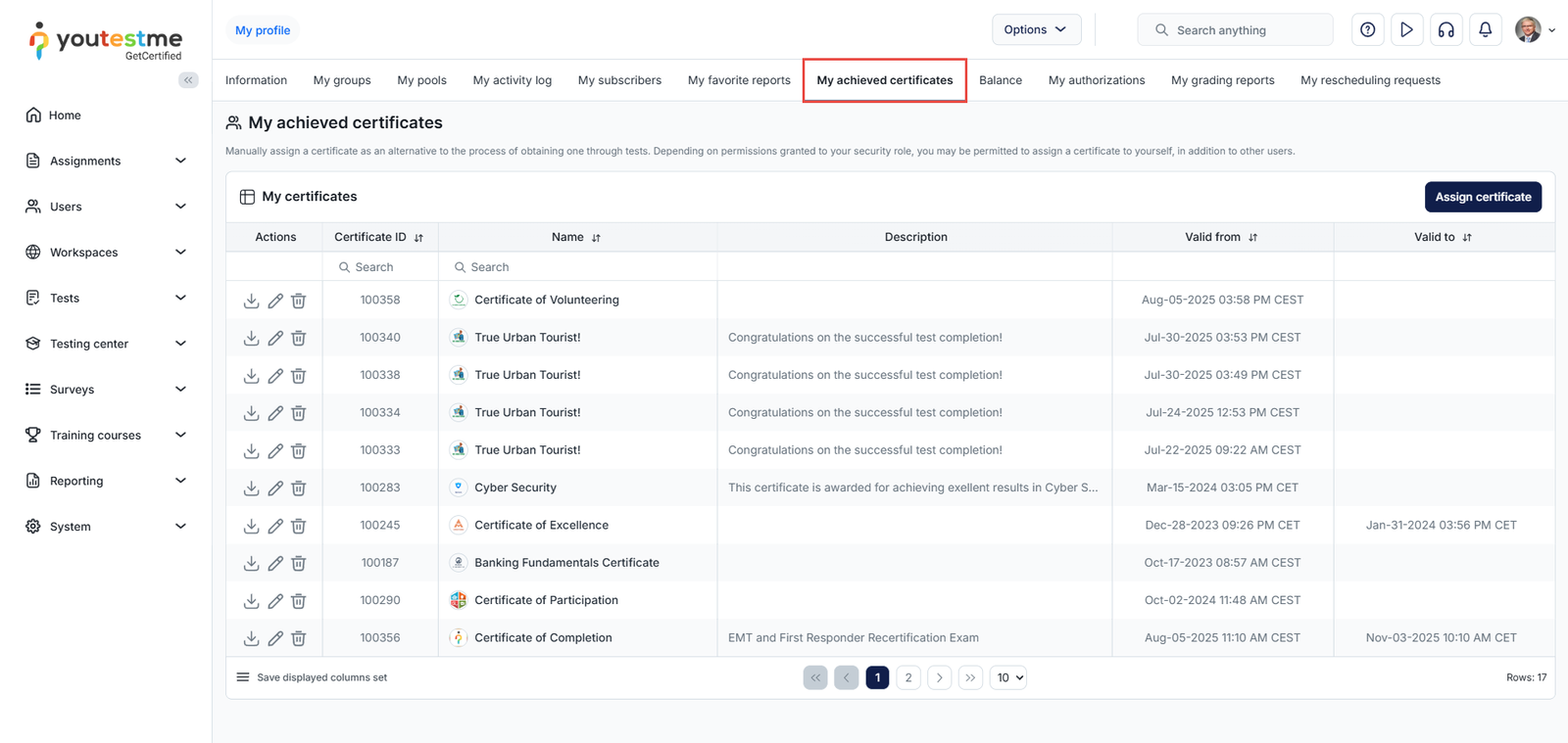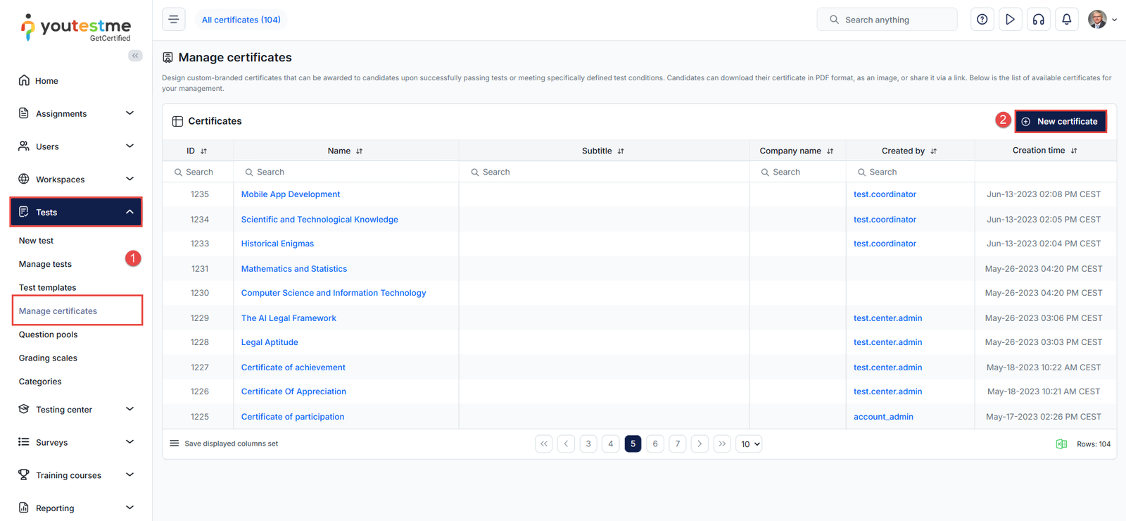 YouTestMe provides users with the ability to generate certified tests, allowing candidates to receive certificates upon completing assignments. This article provides a comprehensive explanation of how to create, integrate, assign, and manage user access to certificates.