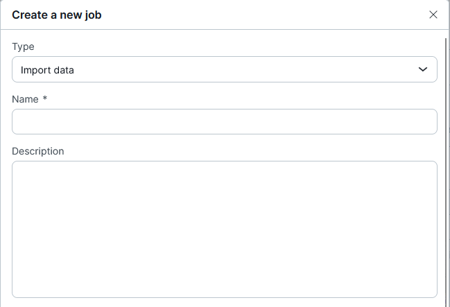 To create a new Import data job, do the following: