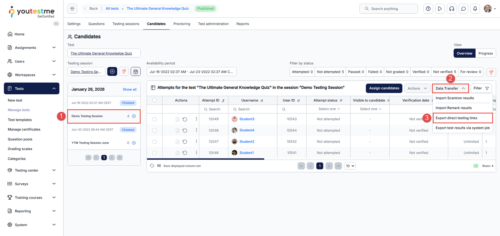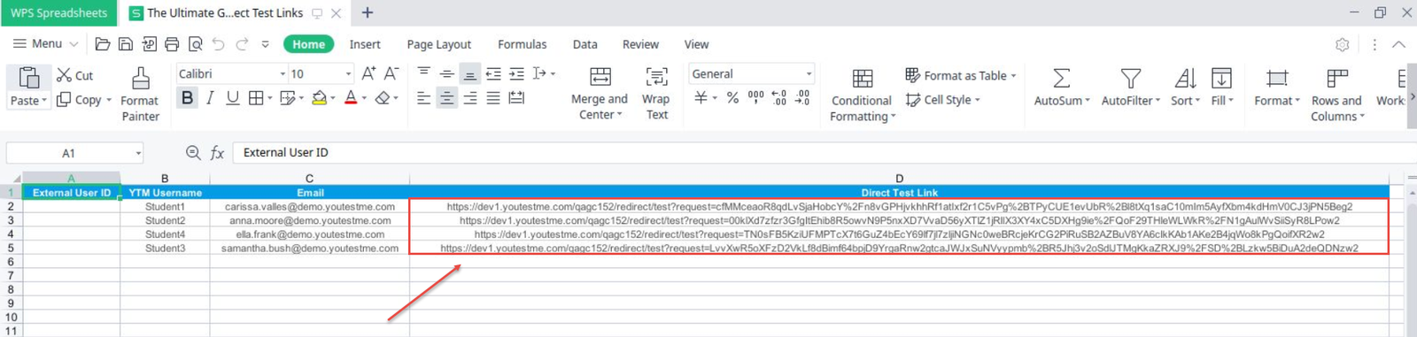 Export Individual Direct Test Links for Assigned Candidates