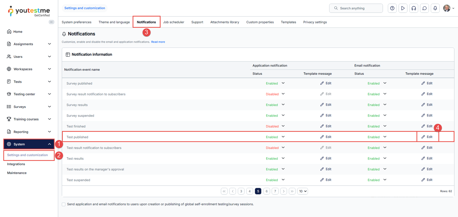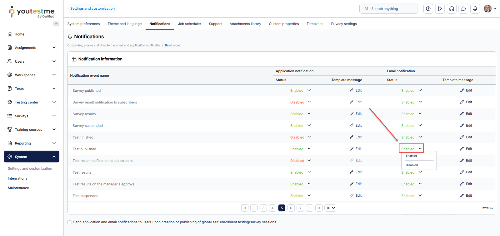 - Click on the Edit option in the e-mail notification column.