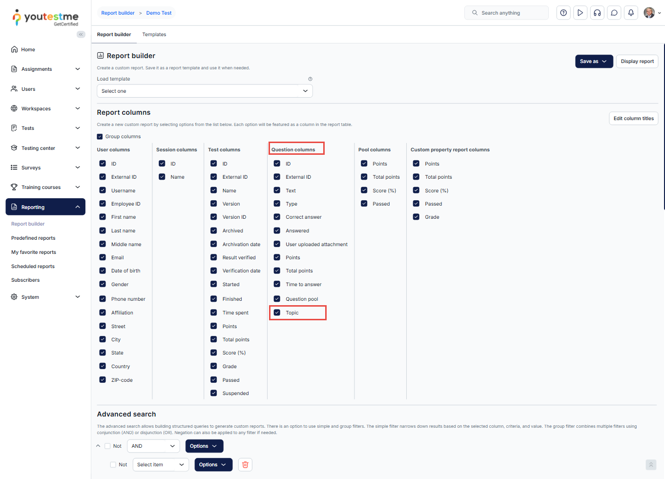 Using Question Properties in Test Reports