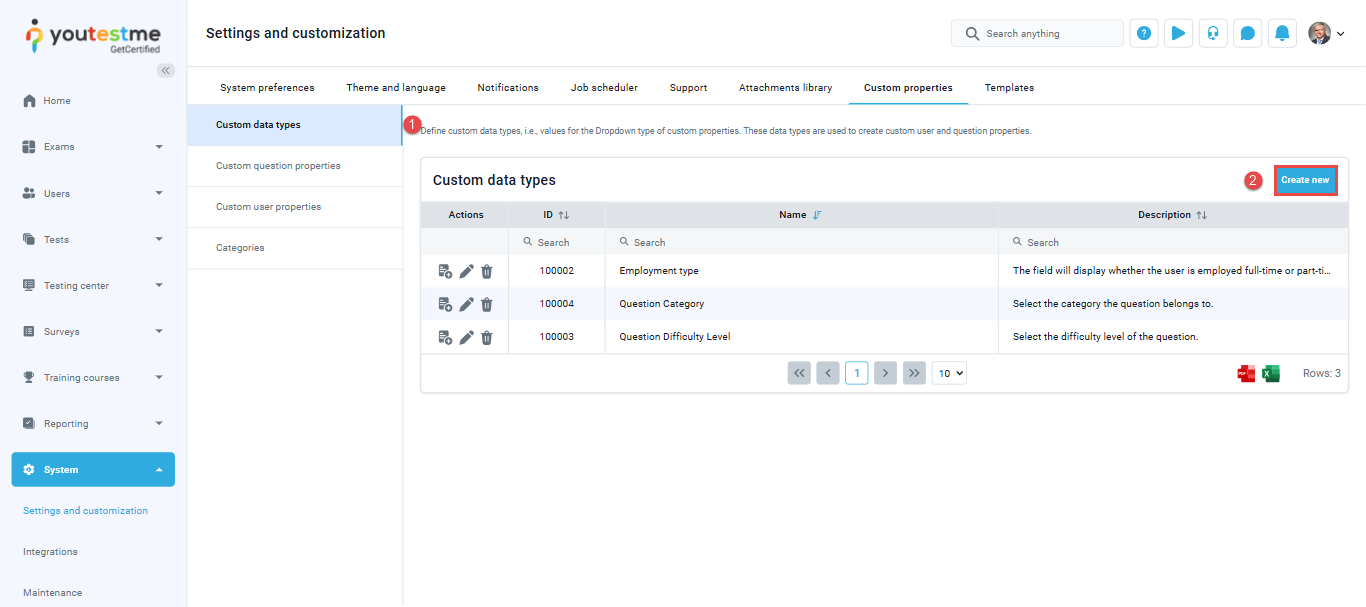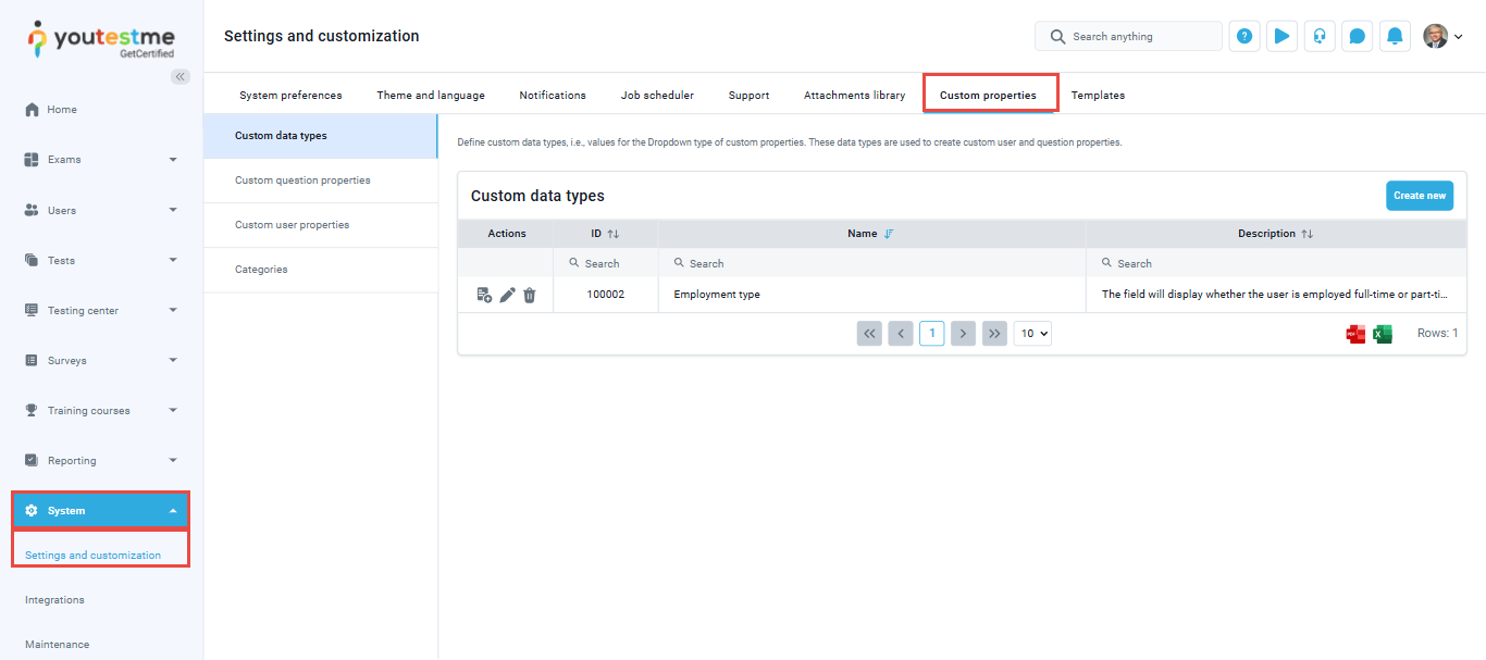 To access the Custom Properties, select the System/Settings and Customization tab and then select the Custom Properties tab.