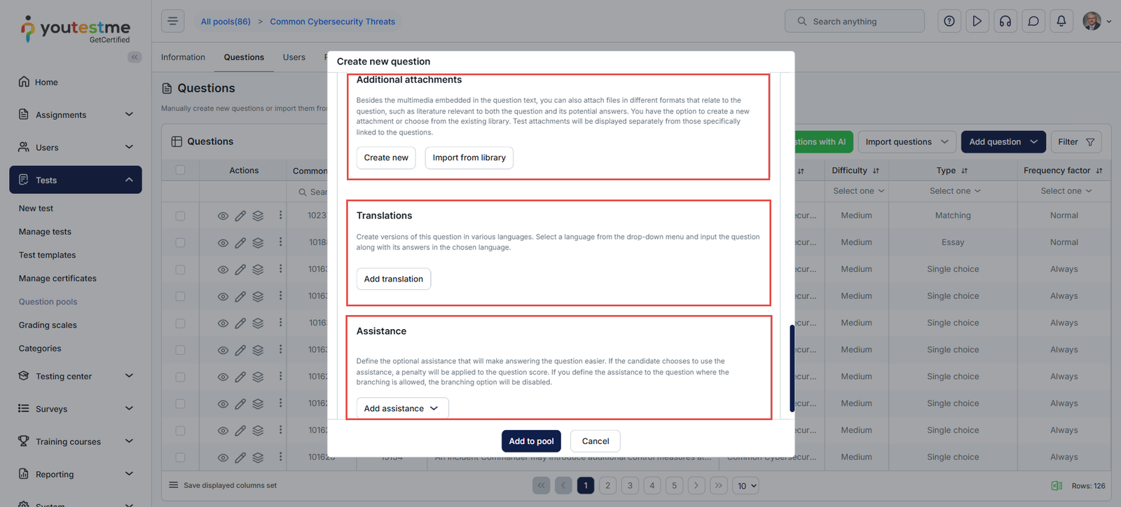 - Click the “Add to Pool” button to save the question.