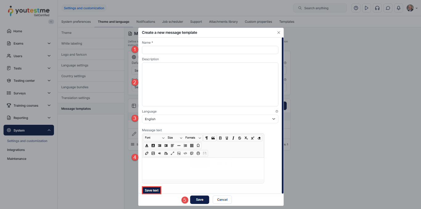 - Message text: Enter the content of the session instructions to be saved in this template.