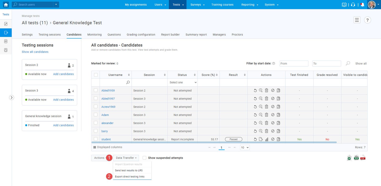 Once you create a test and assign candidates to the session, you can generate shared test links.