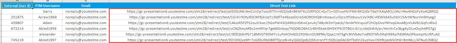 Note: The Excel file will also contain meeting links if the test is proctored using conference tools.